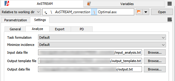 In the dialog box, open an existing AxSTREAM project file (*.axx).