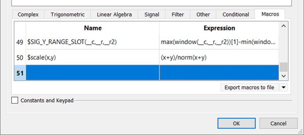 $scale(x,y).Double-click the Expression cell to the right of the new macro name and enter the macro expression.