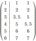 | signal([1,2,4,5,6],[1,2,5,6,7]) | ||