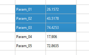 If there are names above and left of the selected value cells, several parameters are added where the name is a combination of the above and left name cell (for example, A1 - empty, B1 - My, A2 - Parameter, B2 - 5 → My.Parameter belongs to value 5).
