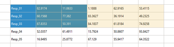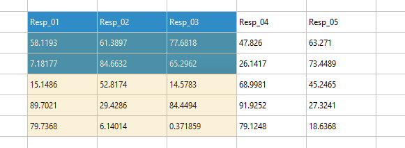 To define a vector response select at least two consecutive scalar values beneath or to the right of a name. Drag the selected cells to the output side and let them drop. The selection automatically expands downward or to the right until an empty cell is reached.