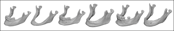 The geometries were prepared using Blender scripting to have the same mesh topology. oSP3D then compared the x, y, and z coordinates of the surface nodes using a cross-correlated empirical random field model for the x, y, and z coordinates.