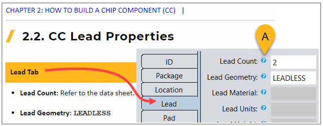 covers CC's (chip components). Each subsection is dedicated to a specific properties tab