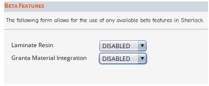 The Beta Features panel allows you to enable or disable individual beta features available in Sherlock.