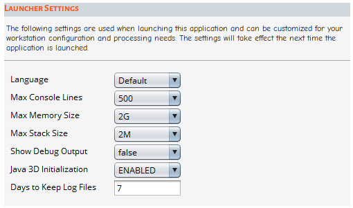 Max Stack Size: Specify the maximum Java stack size. Typically, this setting does not need adjusting.