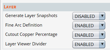Generate Layer Snapshots: This feature (when ENABLED) generates image snapshots when importing layers. This improves Layer Viewer performance, but it may reduce the resolution of large layer models.