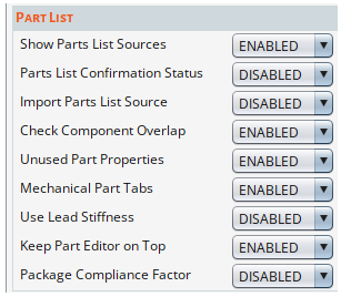 Show Lead Stiffness: When ENABLED, Lead Stiffness will be displayed in the Part Properties Viewer and the Part Editor. (See Managing Part Properties and The Part Editor.) See also the lead stiffness entry in Sherlock Part Properties Defined.