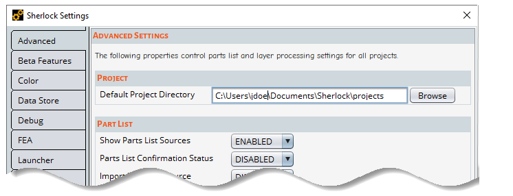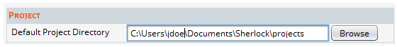 Default Project Directory: Select the default directory where Sherlock projects are saved.