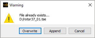 Click Overwrite to delete the existing session file and create a new file in its place. Click Append to add selected commands to the end of the existing session file when recording begins.