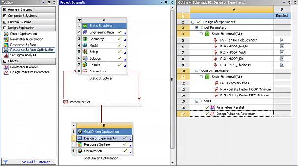 For information about using the Outline pane for parameters and design points, see Working with Parameters and Design Points.
