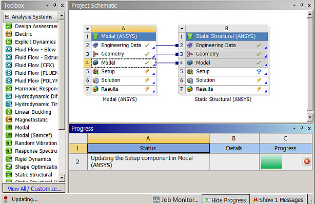The Progress pane displays a progress bar during an update. You can display or hide the Progress pane by clicking or in the lower right corner of the window. You can also interrupt an update process.