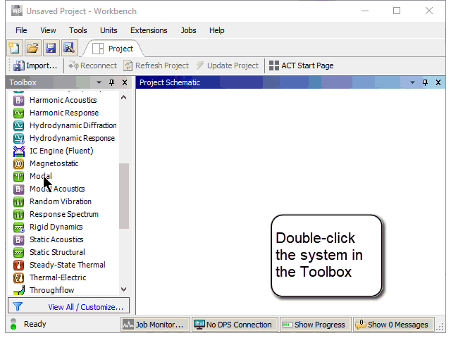 The simplest way to add a new system to the Project Schematic is to double-click the system in the Toolbox.