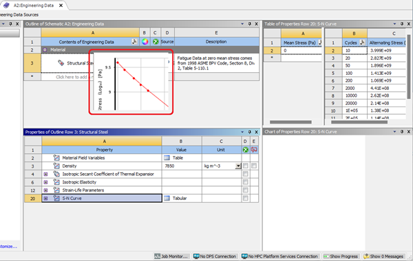 Note: After applying the compatibility settings, you may see the charts window in the Engineering Data workspace moved to the middle of the screen as shown in the figure below.