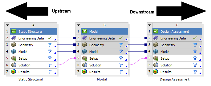 Systems are added from left-to-right, and from top-to-bottom. All data transfer occurs from left (upstream) to right (downstream); you cannot transfer data from right to left.
