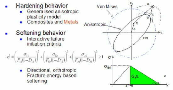 Advanced composite strength and damage models are available in Autodyn. The Orthotropic Softening Model forms part of this capability and is usually used in combination with an orthotropic equation of state and an orthotropic strength model.
