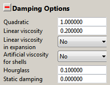 Choose whether to apply artificial viscosity to all structured shells in the model. The linear and quadratic coefficients used are those specified above. You can apply artificial viscosity to an unstructured shell using the Solver Options in the unstructured Parts menu.