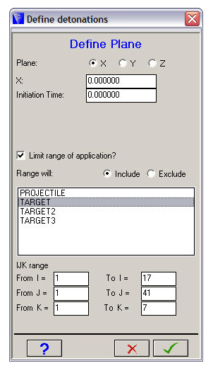 This window lets you define a detonation plane.