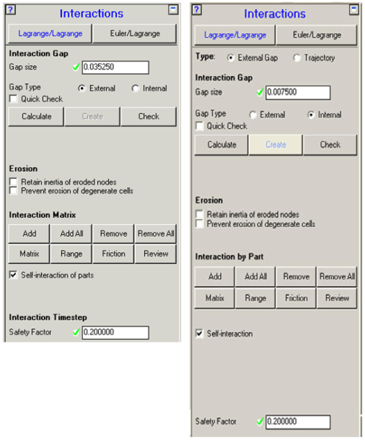 Contents Interactions | Print page 14.1. Interactions - Lagrange/LagrangeThis panel lets you set up interactions between Lagrangian Parts (Parts using a Lagrange, Shell, Beam or SPH solver). « Chapter 14: Interactions 14.1.1. Interactions - Lagrange/Lagrange - Introduction »
