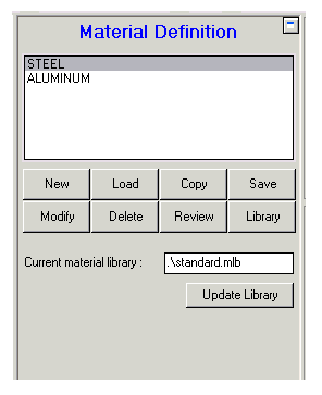 Lists the materials you have currently defined for your model. You can select materials in this list.