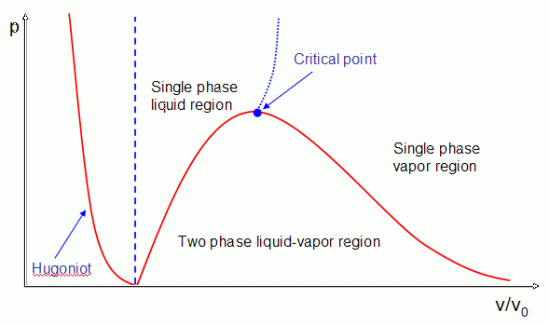 This formulation (Morgan 1973 [5]) only considers material which has expanded from normal density but gives a realistic description of both the single phase (liquid or vapor) and the two-phase (in which liquid and vapor co-exist) behavior of the expanding material, provided that the conditions along the saturation curve for this material can be tabulated.