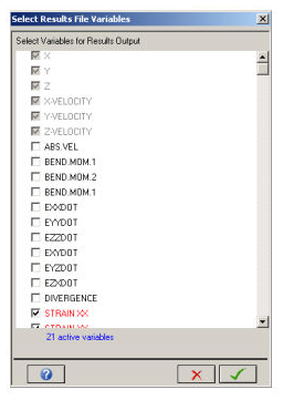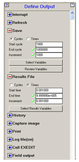 From here, the frequency of results file output and the variable to save into the file are selected. Note that only a limited set of results variables are selected by default.