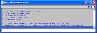 The easiest way to use the command line and become familiar with the command structure is to use the user interface to zone and fill parts as usual. The commands will then be recorded and can then be edited and played back as described above. Also, as can be seen in the picture above some guidance is given in the history window for the syntax used to set options and parameters etc. should you choose to type in the commands directly.