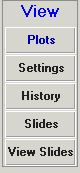 The top group of buttons (View) let you control what you see in the View Panel. From here you can access and modify plot settings, view history plots, and create or view slide shows / animations :