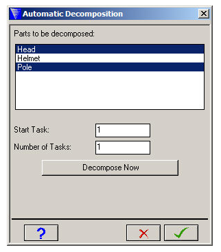 Click the Decompose Now button to automatically define the task on which each of the elements contained in the selected Parts will be assigned.