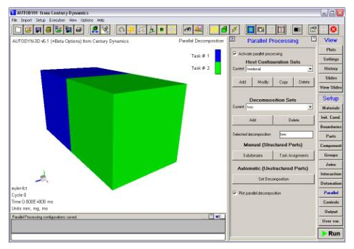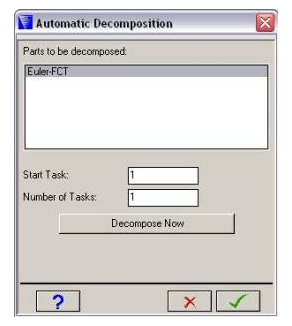 To automatically decompose an Euler model, go to the Parallel dialog panel as seen below, activate parallel processing and add a new decomposition set which in this instance is called 'two':