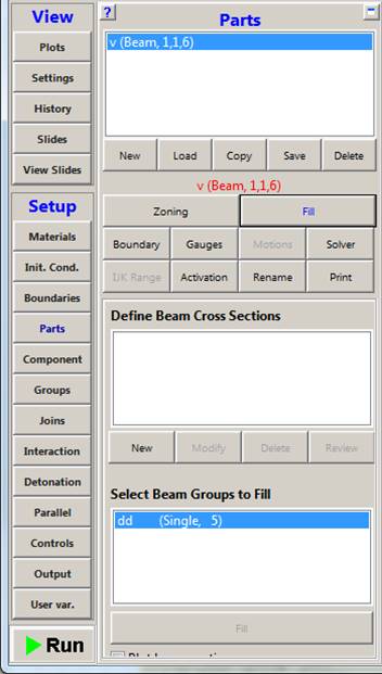 This window lets you create cross section definitions to fill beam groups using the New option, or modify existing cross section definitions using the Modify option.