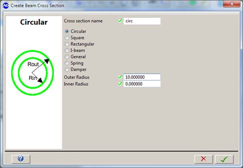 Circular – Inner and outer radius of the circular cross section needs to be defined.