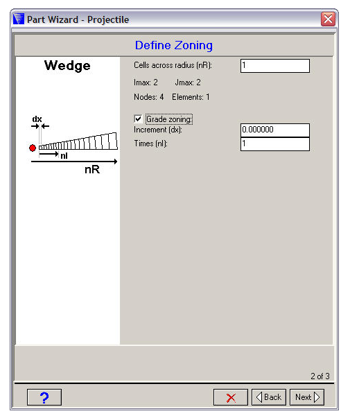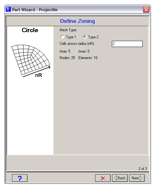 Displayed below the input fields is the index space that will be used for your Part and the number of nodes and elements required.