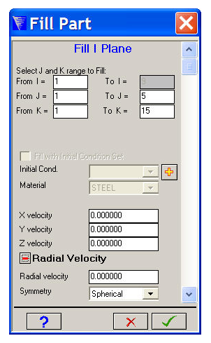 This window lets you fill an I, J, or K plane of the current Part with initial conditions.