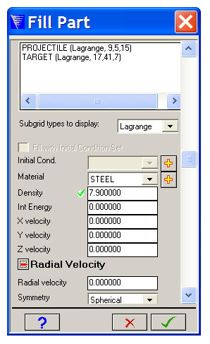 If you do not want to use an Initial Condition Set, enter parameter values for your fill (Density, Energy, Velocity).
