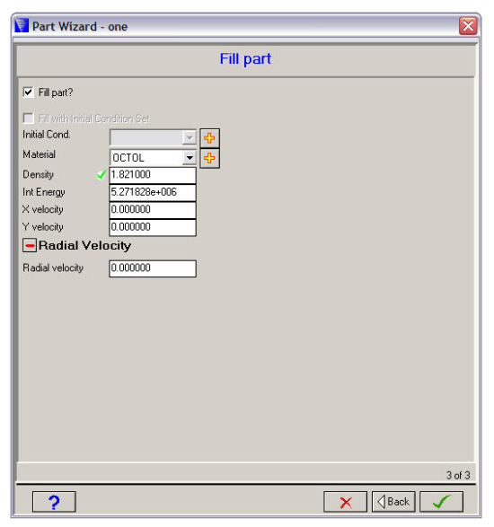 The Part Wizard lets you fill your entire Part with a single material and initial values.