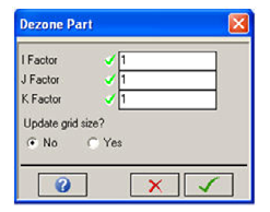 Select Yes if you want the IJ index range of the Part to be reduced automatically to reflect the dezone. If you select No, the index range will remain unchanged, with the higher indexed cells becoming unused.
