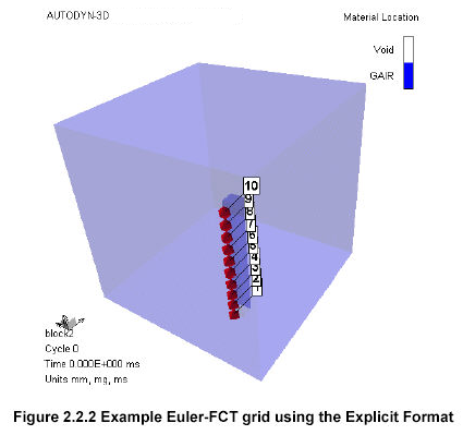 Implicit format – Autodyn reads the fill flag of Euler-FCT cells in a certain predefined sequence. The fill flags of ALL the cells in the input region must therefore be defined in the data file.