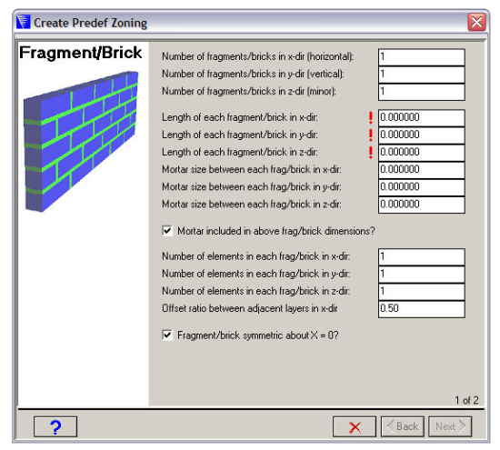 Two dialog windows let you build a fragment or brick wall.