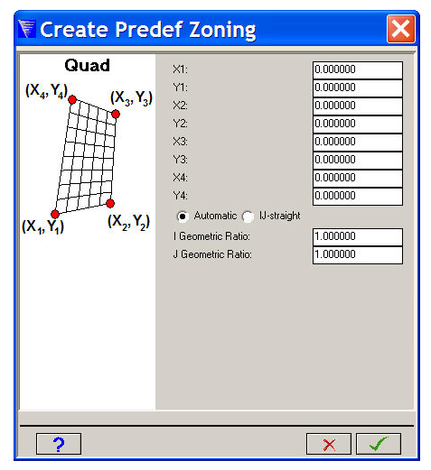 Input geometric ratios in the fields provided if you want to grade the zoning instead of generating equally spaced nodes.