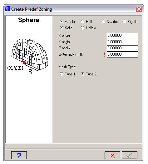 If you choose a hollow sphere, you will have to specify inner and outer radii for the sphere.