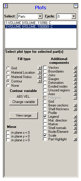 The Parts in the model. Operations performed in the Plots panel will be applied only to the Part(s) you select.