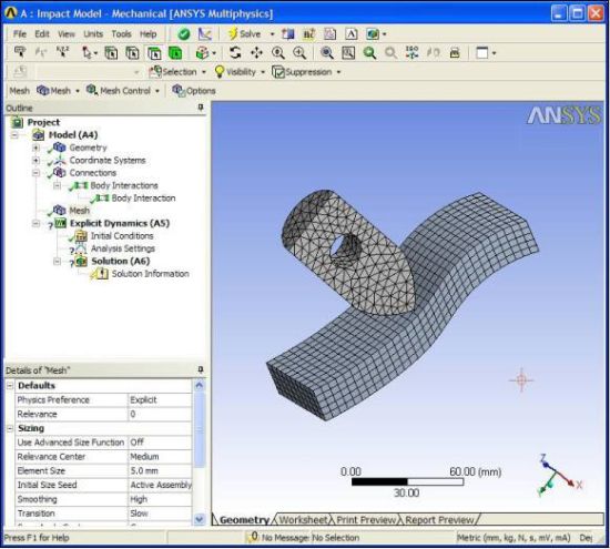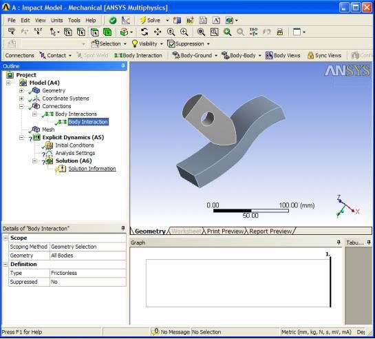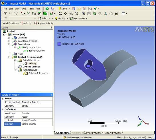 The model definition in the Explicit Dynamics system will be transferred into the Autodyn application.