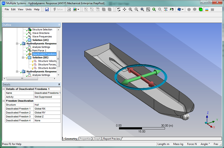 Right-click the Hydrodynamic Response object and select Insert > Deactivated Freedoms, or click the Deactivated Freedoms icon in the Analysis toolbar.
