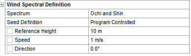 Seed Definition defines the random seed for a wind spectrum. The options available are Program Controlled or Manual Definition. If you select Manual Definition you can set the seed value.