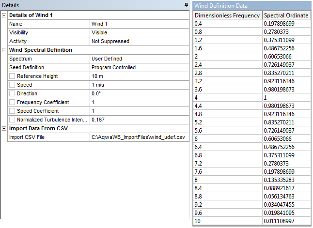 The rows of the Wind Definition Data table are automatically sorted in ascending order of Dimensionless Frequency. Duplicate Dimensionless Frequency entries are not valid.