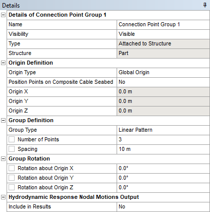 For a Connection Point Group, the Type field will display ‘Attached to Structure’, and the Structure field will show the name of the parent Part. For a Fixed Point Group, the Type field will display ‘Fixed’.