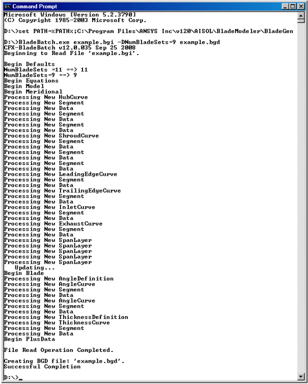 set path=%path%;c:\Program Files\ANSYS Inc\v110\AISOL\BladeModeler\BladeGenBladeBatch example.bgi -DNumBladeSets=9 example.bgd