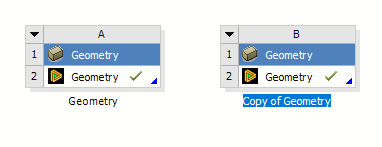 If you perform a duplicate operation on a cell below the geometry cell, then geometry will be shared between the source system and the duplicated system: