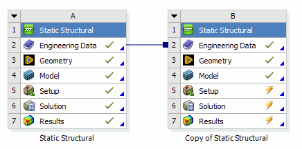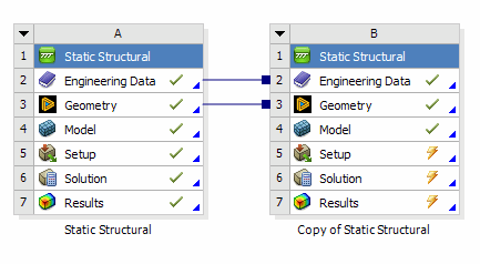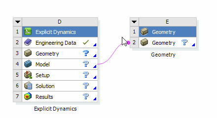 After selecting a system in the flyout menu, Workbench will create the new system to the right of the current system and establish a Provides-To connection from the geometry cell to that new system.