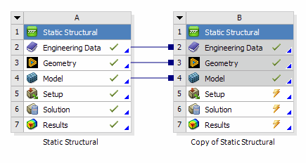 If the document has been saved, this cell will automatically be connected to the active model of the SpaceClaim session that launched Ansys Workbench, and the SpaceClaim document tabs will change to show the yellow Ansys Workbench icon.